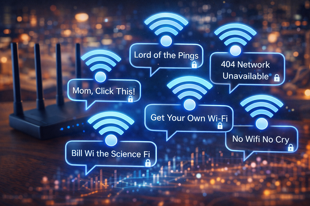 عندما يتعلق الأمر بالمنزل، فإن اسم الواي فاي هو أول ترحيب رقمي لضيوفك، في عالم الوايرلس واللاسلكي، جربنا كلمات مستوحاة من الأفلام الشهيرة والتلاعب بالألفاظ الذكي، ووجدنا أن هذه المجموعة تضفي طابعاً فريداً على “مودم” العائلة، هناك متابعون لنا جربوها وأخبرونا أن اسم مثل “Titanic Syncing” جعل جيرانهم يتساءلون بضحك عما إذا كان الإنترنت يغرق فعلاً!